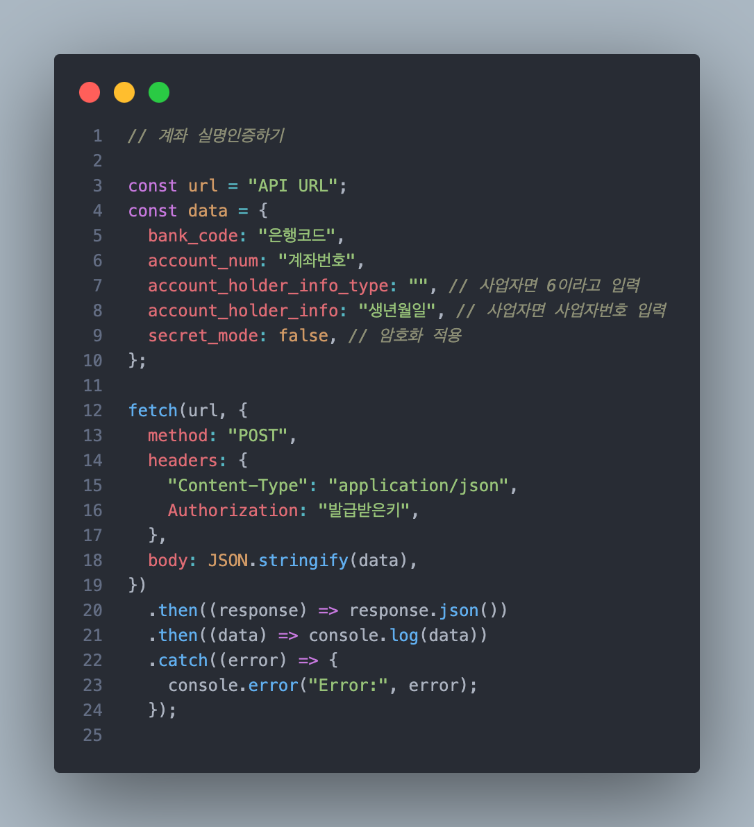 - 계좌 실명인증하기