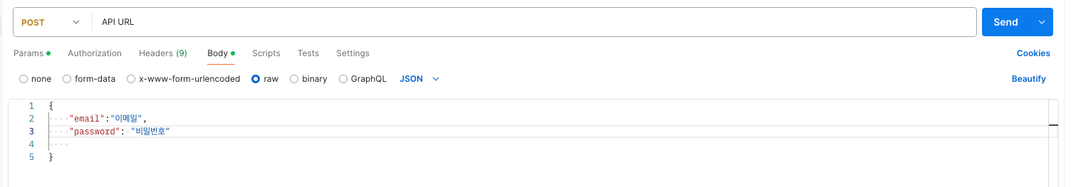 - 아래와 같이 콜렉션을 하나만들고 간단히 입력하나만해도 API를 테스트 할 수 있게되었음